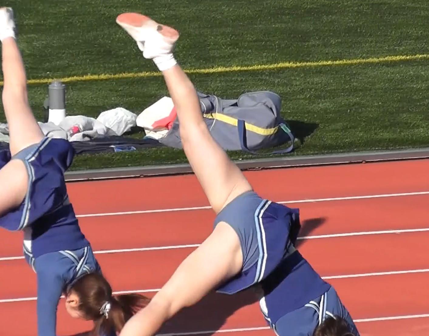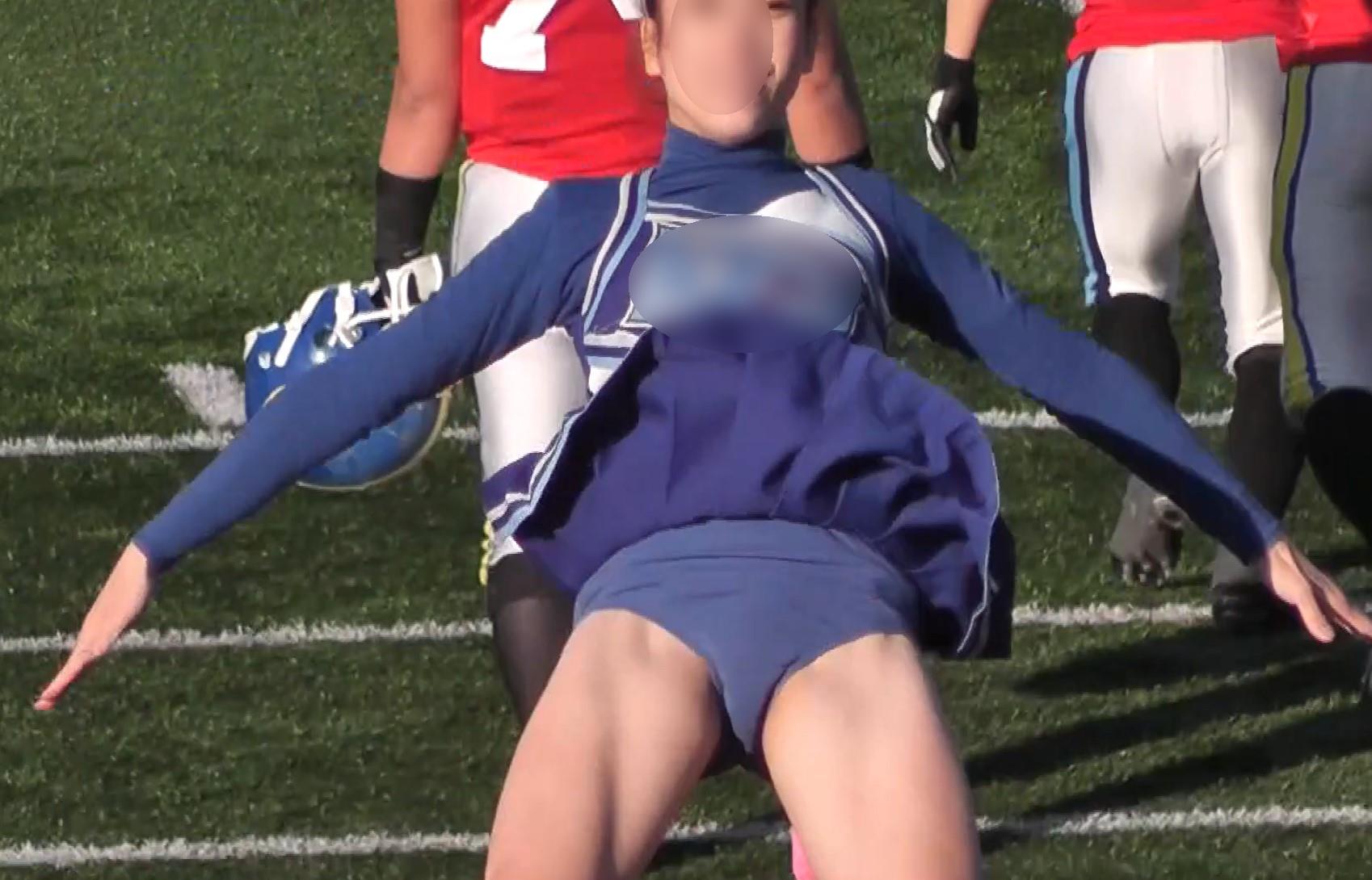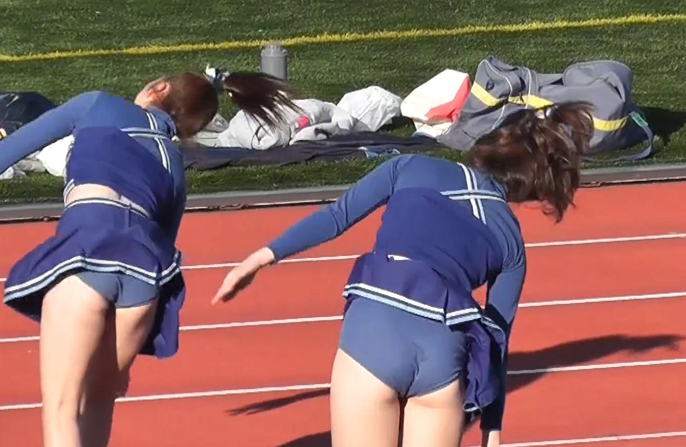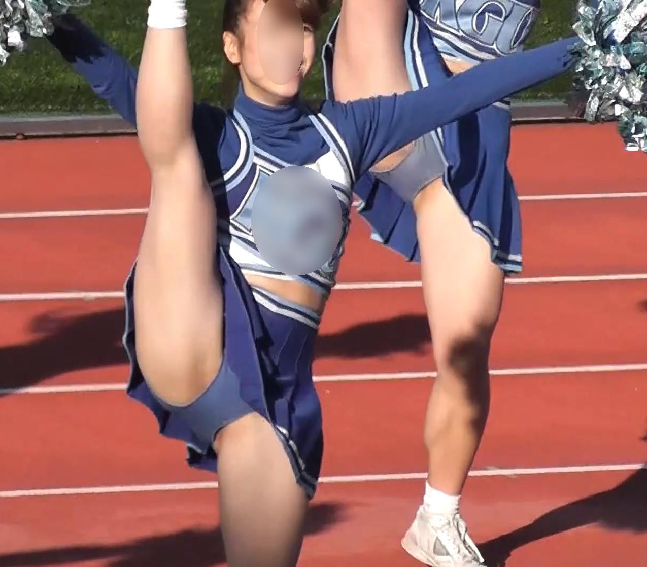チアリーディング部員のブルマ型アンダースコートを見ることができますが、