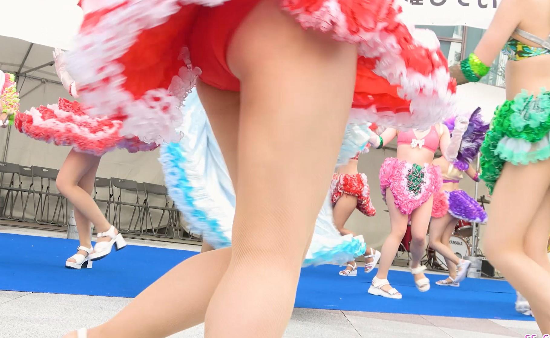 ブルマショーツ型ボトムス衣装の最後砦である、ビキニサンバを地の利を生かして最善列で撮影できる貴重な動画作品と言えます。