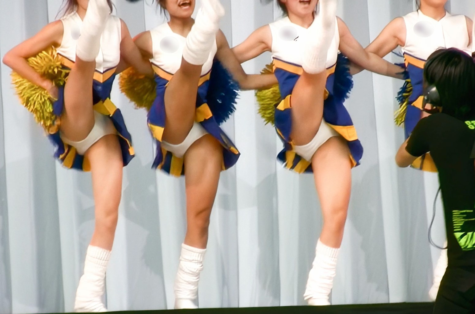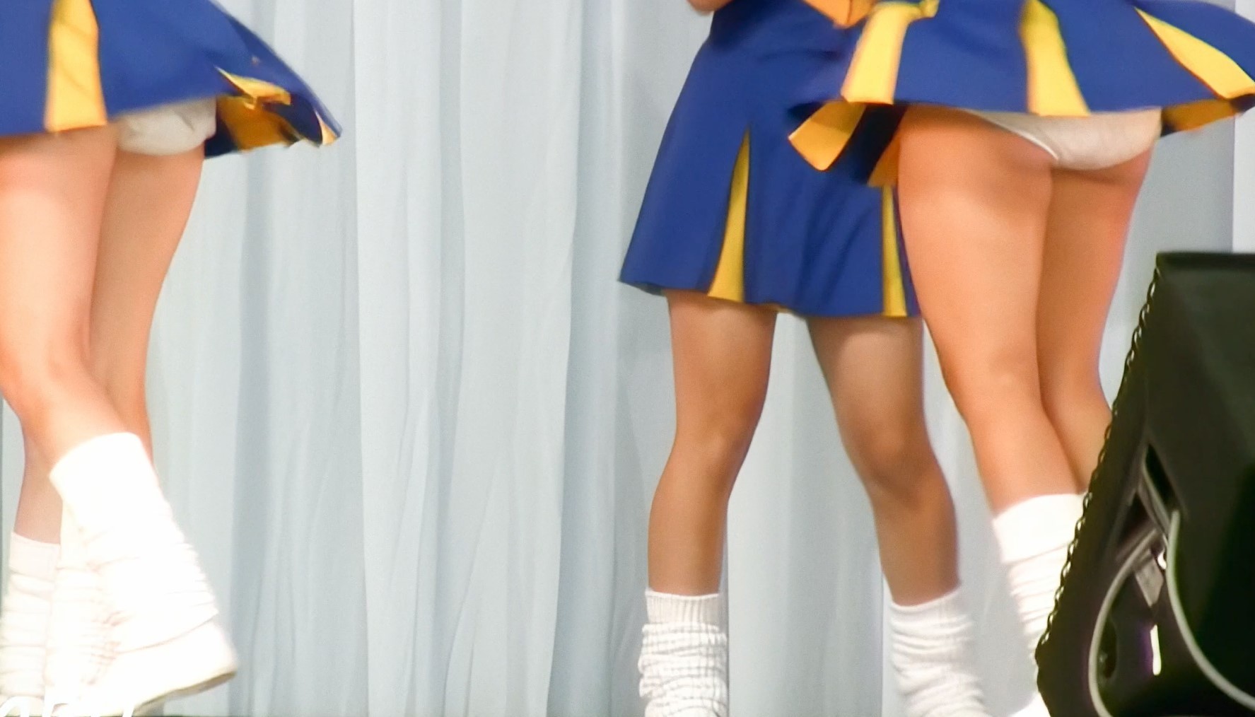 ステージ上の女子高生チアダンス部員がどんな姿勢をしていても純白生パンツをパンチラしてくれているようです。