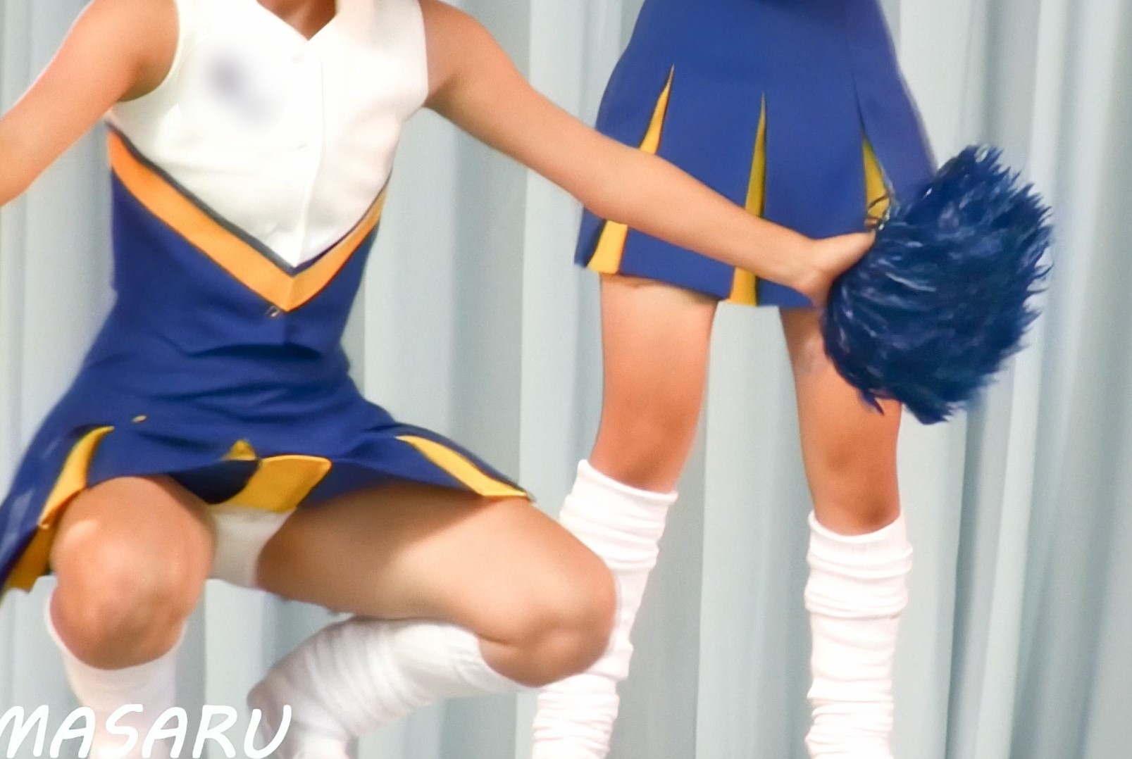白色アンダースコートに包まれた女子高生チアのお尻を逃さずに撮影します。
