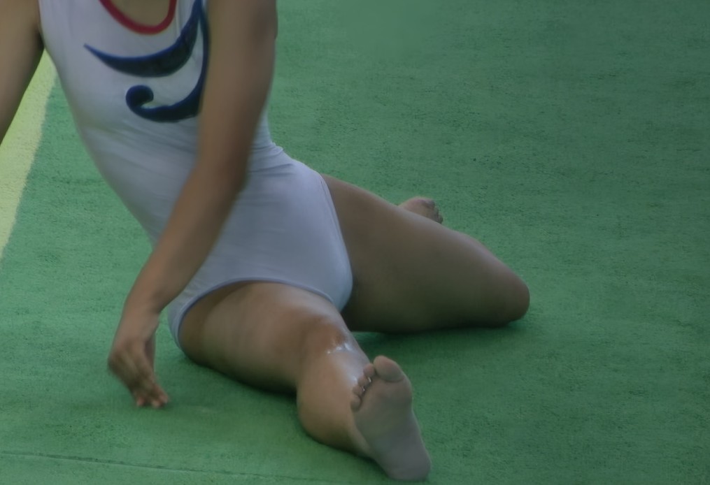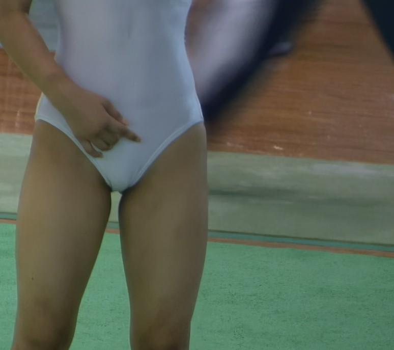 ハイレグ競泳水着着用が無くなってきた女子水泳を除けば、もはやハイレグ角度ナンバー1ジャンルと言える女子体操競技です。