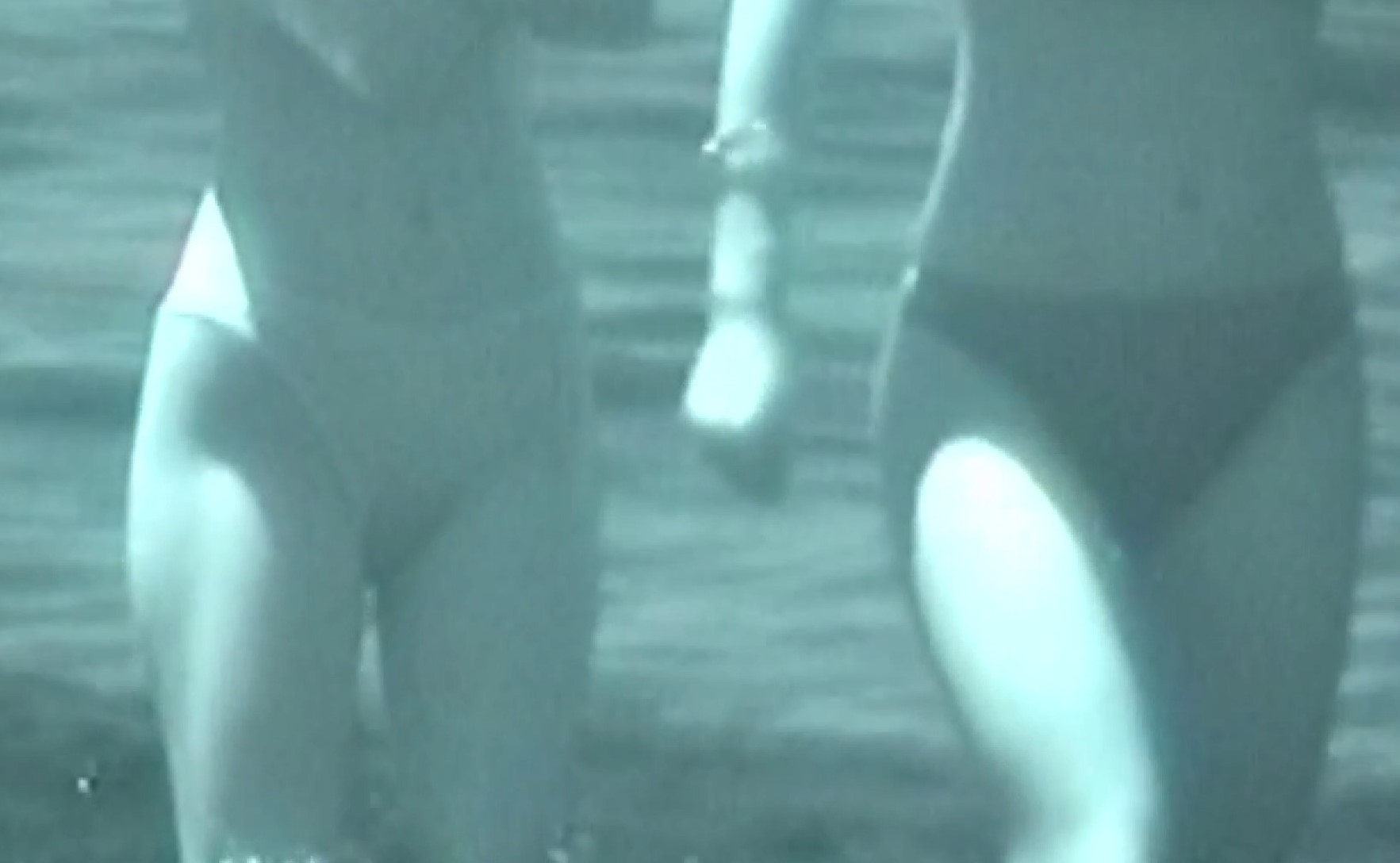 海水に濡れることで鮮明に透けるビキニ越しのアンダーヘアー